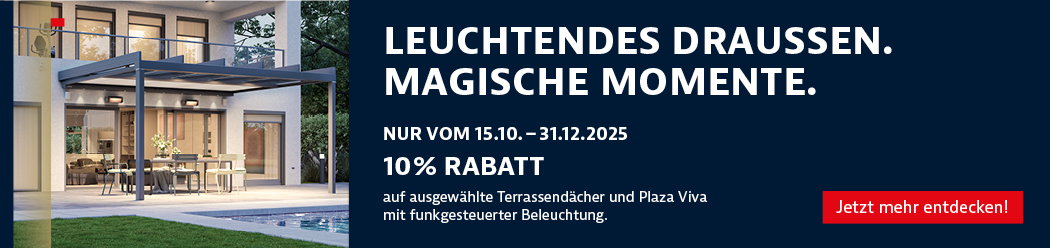 Planen Sie Ihr eigenes Beleuchtungskonzept! Wo möchten Sie die Farb-LED-Bänder anbringen? An den Dachträgern oder lieber an den Pfosten? Oder sogar an beidem? Kein Problem! weinor hält vielfältige Möglichkeiten bereit, damit Sie Ihre Terrasse ins rechte Licht tauchen können.